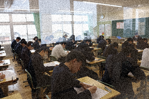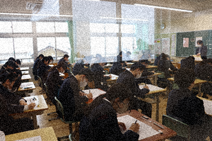今日は、第4回定期テストを行っています。写真は3年生の様子です。雪の中の大変な登校でしたが、しっかり時間に間に合わせ頑張っています。最後の一分一秒まで諦めずに頑張ってください。帰る時に雪がやんでくれるといのですが・・・。