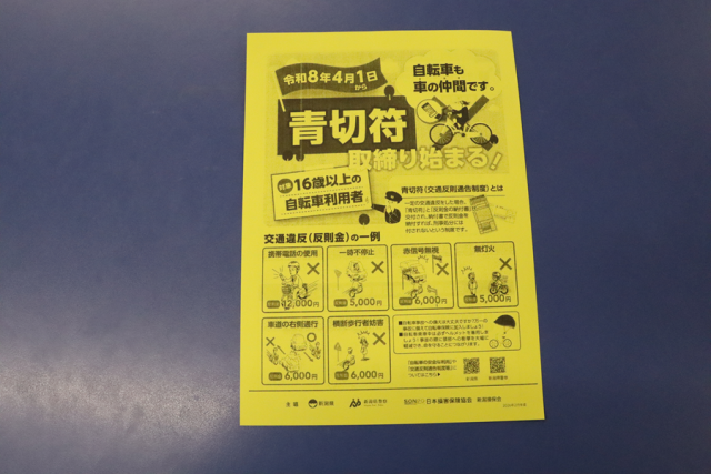 3学年朝会では、燕警察署員の方より交通安全指導を行っていただきました。令和8年4月1日から法律も変わり、自転車も車と同じように青切符の取り締まりが行われます。16歳以上の自転車利用者が対象となります。一例を上げると一時不停止では反則金5,000円となります。法律が変わるからではなく、安全に気を付けて引き続き自転車利用をしてほしいと思います。後日、1,2年生にも交通安全指導をしていただく予定です。