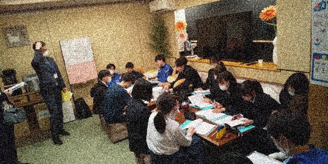 実行委員、班長、室長会議の様子です。みんな素早く行動できていて良かったこと。前に人が立って話をするときは静かにしたほうがいい。という振り返りがありました。その後、明日の日程の確認と各係からの連絡があり、終了しました。戻ったら内容を部屋のみんなに伝えます。ある部屋に用事があって入るとしおりに振り返りを記入していました。