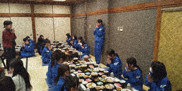 夕飯は開始時刻前に集合してたので早く食べ始めました。すき焼き、カレー、フライ、盛りだくさんです。