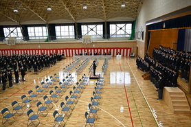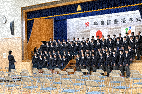 全校で歌う最後の校歌でした(写真1枚目)。式が終わり、全校合唱「旅立ちの日に」(写真2枚目)、卒業合唱「3月9日」(写真3枚目)卒業生は感極まって涙する生徒もいました。最後に参列者のお祝いの拍手による退場です(写真4枚目、5枚目)。指揮者、伴奏者の二人がお礼をし最後の学活となりました。vol.3へ続く。
