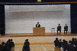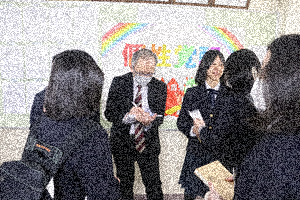 本日、お世話になった3名の先生方が離任されました。生徒たちへ最後のメッセージを伝えていただきました。先生方との思い出と重ねながら顔を上げてしっかりと話を聞いていました。離任式が終わった後の教務室前は、先生方へサインを求める生徒たちであふれていました。先生方大変お世話になりました。