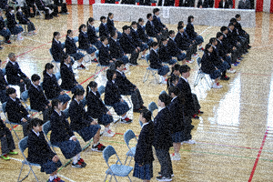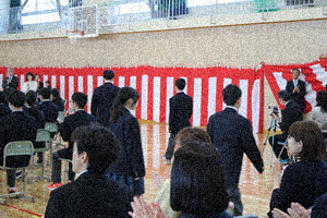 午後から入学式を行いました。新入生呼名ではオリエンテーションの時より大きな声で返事をしていました(写真2枚目)。新入生代表生徒より、誓いの言葉が述べられました(写真3枚目)。先輩からは歓迎の言葉が述べられました(写真4枚目)。明日から全員そろってのスタートになります。1年生はまずは学校生活に慣れるところから始めてください。2、3年生がフォローしてくれます。