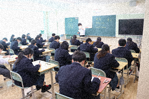 今日は全校でNRTの理科・社会(標準学力テスト)を行っています(写真1、2枚目:3年生、3、4枚目:2年生)。1年生は、最初に知能検査を行っています(写真5枚目、6枚目)。国・数・英は3年生は12月、1・2年生は2月に実施予定です。