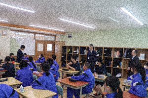 小池小学校、大関小学校の校長先生から全校の授業を参観していただきました。1年生は、数日前までお世話になった小学校の校長先生を見て、うれしそうな表情でした。授業開きでジェスチャーゲームを行っていました(写真1枚目)。写真2枚目は2年生理科、写真3枚目は3年生数学でした。