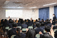 1学年朝会では令和8年度柏陽会役員選挙立候補者より選挙演説がありました。副会長女...