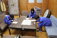 2学年朝会に少し早めに行くと学年委員の皆さんが学年種目の準備を行っていました(写...