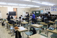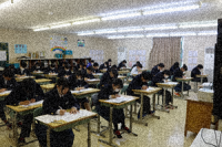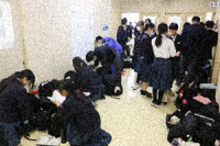 2限と3限の休み時間に仮設教室へ行ってみました。2限のテストが終了し、互いに答え...