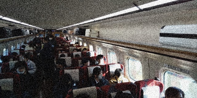 長岡駅を通過し自由時間になりました。さっそく座席を回転させて楽しんでいる人もいま...