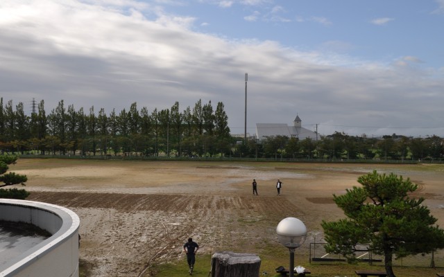 体育科の先生方中心にここまで整地しました。あとは日光と砂と若い君たちが頼りです。続々と吉中生が登校しています。「環境は自分たちで作る」いい一日にしましょう‼