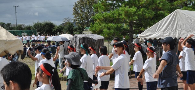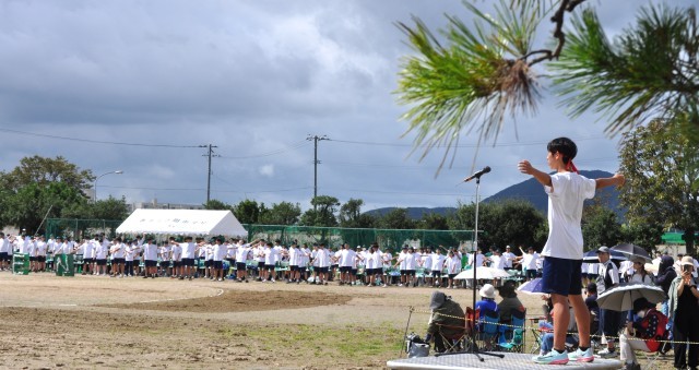 開会式が始まりました。パネル紹介やラジオ体操が行われ、エール交換へと移ります。