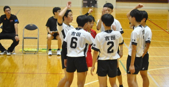 新しいユニホームに身を包み、新生吉中男子バレー部の幕開けです。初戦の対戦相手は三条第四中。