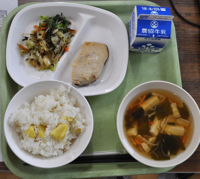 今日のメニューは季節感たっぷりの栗ご飯です。湯葉のすまし汁にキャベツのサラダ、さばの西京焼き。大好きな和食が並びました。計750kcalをおいしくいただきました。ごちそうさまでした‼