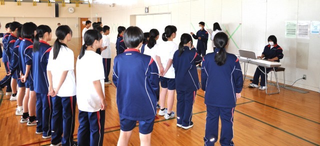 第二体育館では1年3組「行き先」第一体育館では3年5組が「ヒカリ」音楽室では1年5組が名曲「マイバラード」を切れ味よく歌っていました。