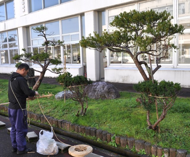 雷に土砂降りの昨日から一転、小春日和の一日となりました。今日は稼ぎ時、かな。管理員さんたちが美しく冬囲いを進めてくださっています。ただやればいいのではありません。これが雪を被って実に風情ある光景を醸しだしてくれるのです。「目で楽しむ雪景色」もそう遠くないということです。