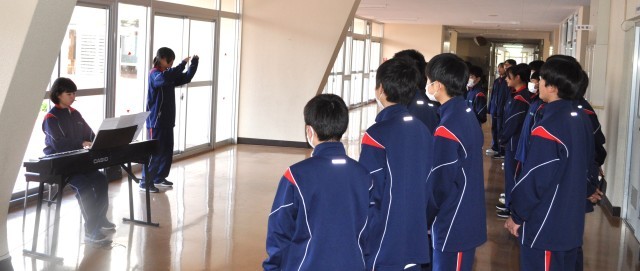 早速生徒玄関から歌声が聞こえてきました。行ってみてビックリ‼2組男子が少人数で歌っていました。良い響きだ…5組は歌い方も安定していよいよ仕上げに入っている感じです。