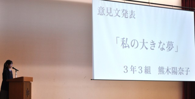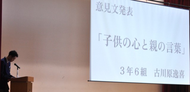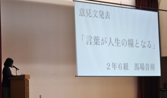 続いて意見文発表。2年生と3年生ふたりの発表がありました。それぞれが自分の言葉で聴衆に訴えていました。
