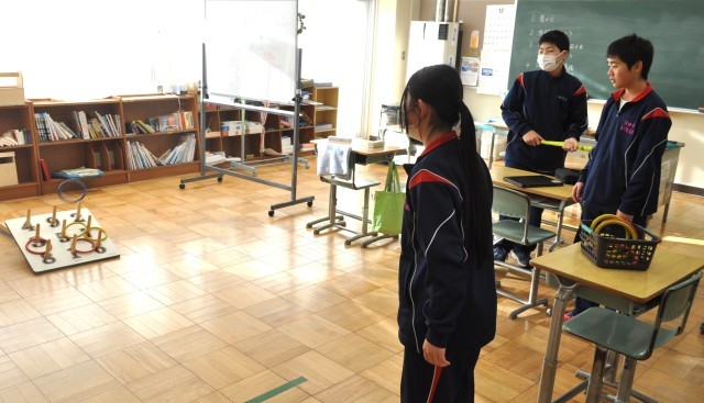 「校長先生、輪投げやってるよ!」のお誘いに1限自立の時間、若葉さんにお邪魔しました。実はこの輪投げ、全国大会もあるというから驚きです。なかなかうまくいきませんでした。投げ終わったらそれぞれ自分の得点を計算します。彼らもこの1年でまた成長しました。元気な学期末です‼