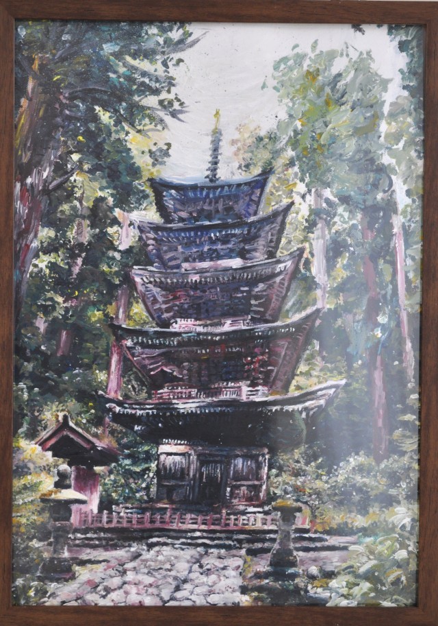 中越美術展に出品していたものです。作品名は「堂セラピー」【作者(2年生美術部員女子)の言葉】「新潟じゃなくて山形の堂だったと思います。森に行きたいです。描くの楽しかったです」来校された際にはぜひご鑑賞ください‼