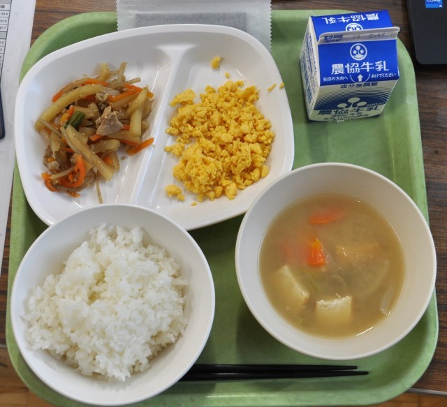 焼きのり じゃがいものきんぴら たまごみそ ごはん 呉汁 牛乳の計717Kcalです。ここ数日、陽が高くなった気がします。一歩一歩春ですね…。