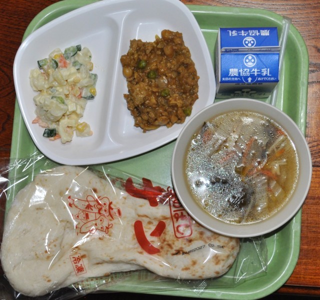チーズ入りアセドアンサラダ ドライカレー ABCスープ ナン 牛乳の計707Kcalです。ようやく雪の不安がなくなりつつあります。週末も気温が上がります。落雪には注意しましょう!