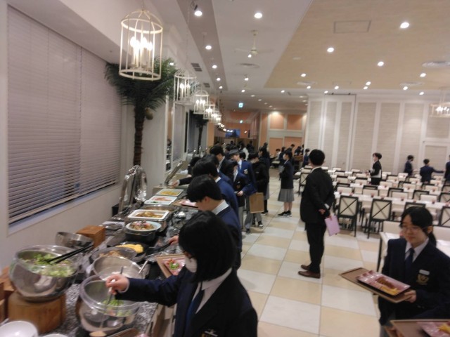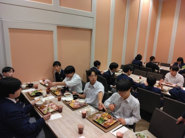 修学旅行の朝は早いですが、みんな元気に朝食を食べています。