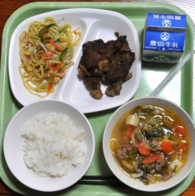 朝はまだまだ寒いですが、日中は春らしい陽気になってきました。今日はラーメンサラダ スタミナレバー キムチスープ ごはん 牛乳の計821kcalです。