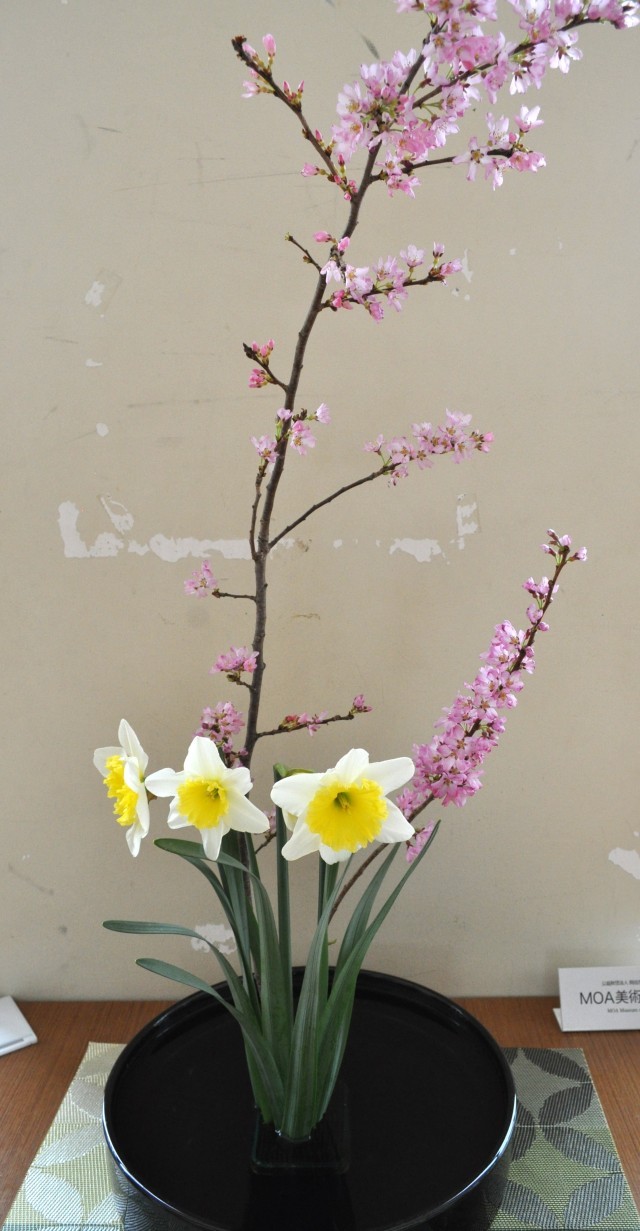 桜と水仙で迎える新年度です。女子バレーは先輩が来てくれました。外は春雨。静かに年度が終わります。