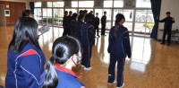 校長「学ぶ〜鍛える〜心の成長があった人、手を挙げて〜。春休みはリセットのチャンス。でも、忘れてはいけないこともあるよ。」(写真中)