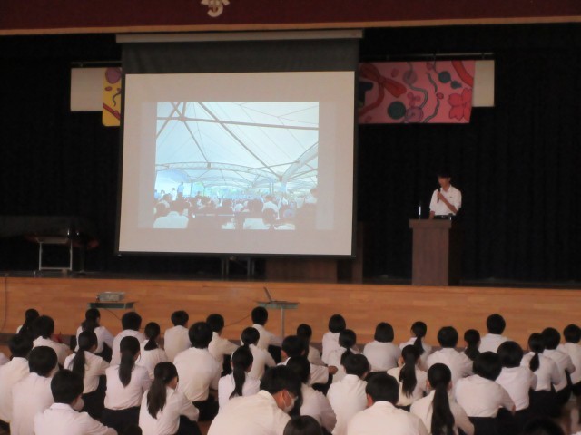 分水中からは生徒会長が代表して参加したのですが、2泊3日にわたる様子を分かりやすく説明してくれました。