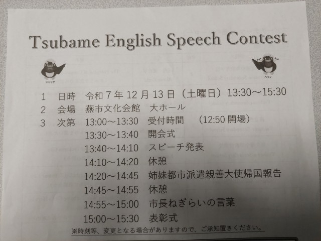 【12月17日(水)】燕市英語スピーチコンテスト