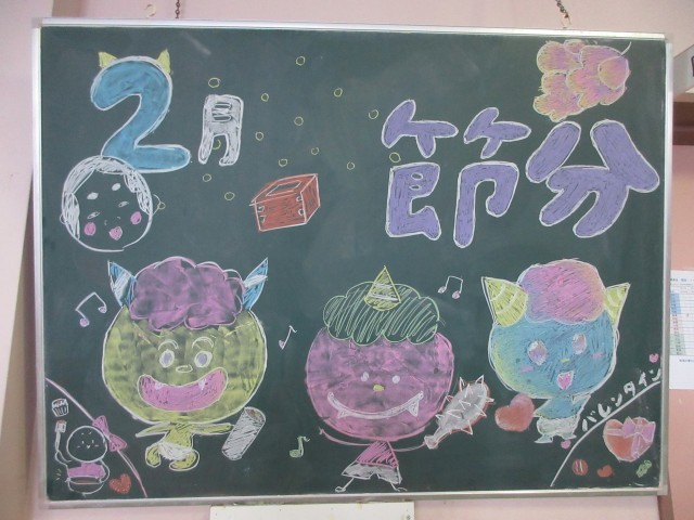 今回は「節分」です。毎月毎月、アイディア豊かに作品を作ってくれて、全校に季節を感じさせてくれています。