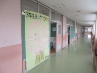 1年生が制作した「3年生ありがとう」メッセージです。一人一人が桜の花びらにメッセ...